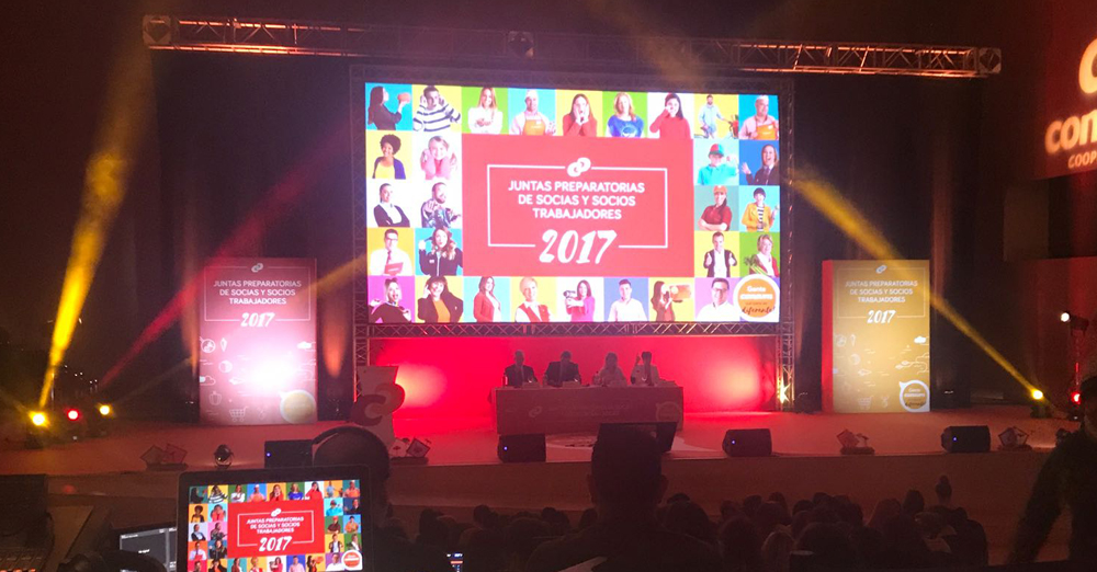 Para facilitar el desarrollo de la jornada Arenas Audio realizó la instalación de una pantalla gigante central y varias pantallas auxiliares, así como de un conjunto importante de aparatos de iluminación y de un sistema de conferencia.